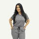 This kit includes one chest pocket scrub top and elastic waistband drawstring pants.