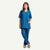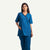 This kit showcases a modern scrub top with an extended V-edge neckline accented by bold black trim, paired with matching tailored cargo pants for a sleek, professional look and all-day